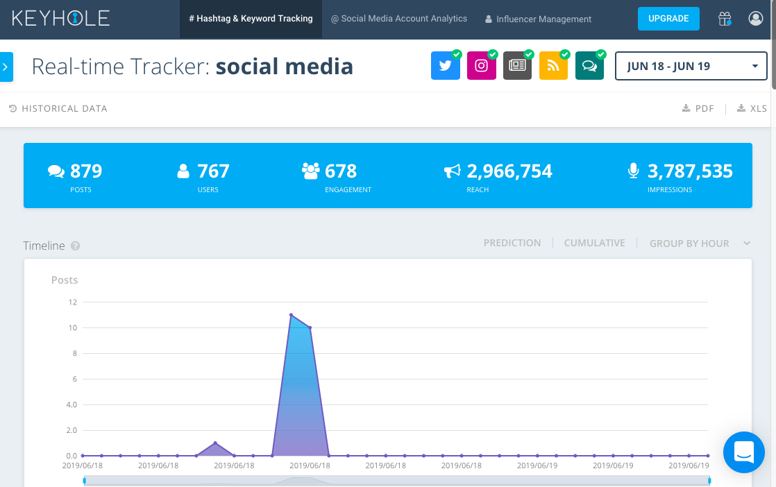 There are multiple social media tracking and analysis tools available on the market, and even Instagram, Facebook or Twitter now come with (FREE) built-in features. If you are looking for trending keywords hashtag performance tracker my go-to is #Keyhole (which is also FREE to use).