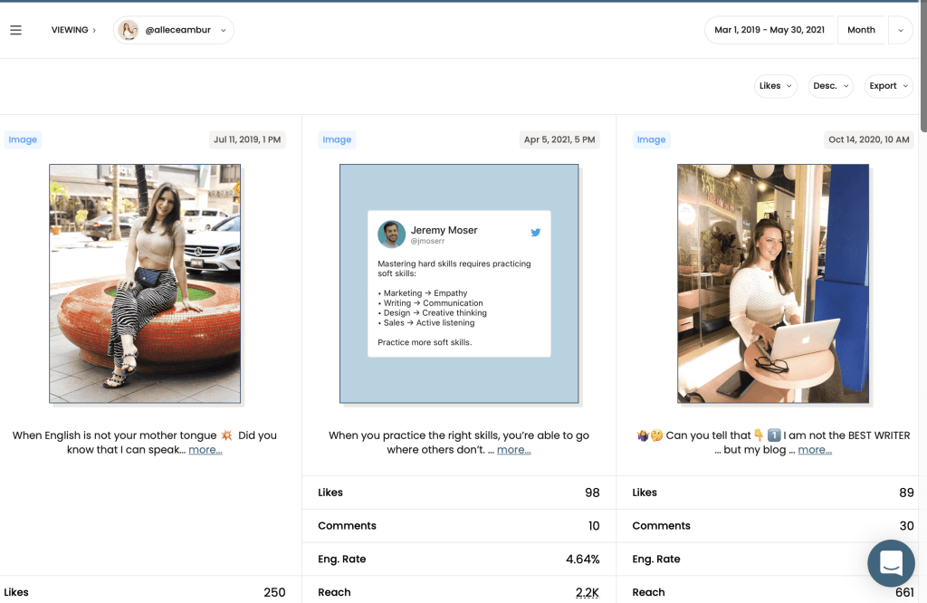 This is a good tool to keep your strategy in check and see which posts get you the best engagement & reach.