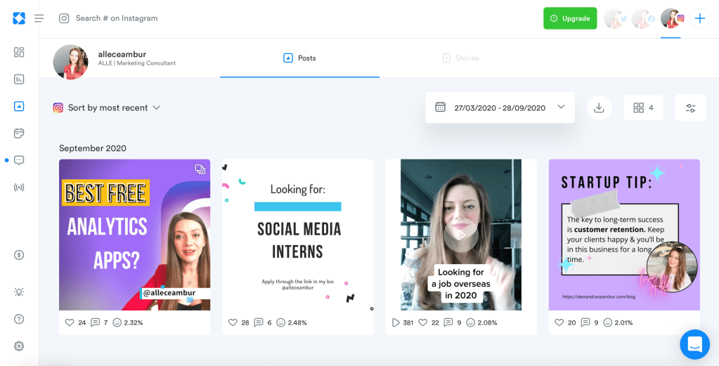 I’ve used this app for almost 2 years! And I like it because it’s a compact/minimal version of what you get on Iconosquare. The charts are less beautiful, but still quite valuable. The only downside (for me) is that the charts come with strong watermarks and cannot be used in professional reports.