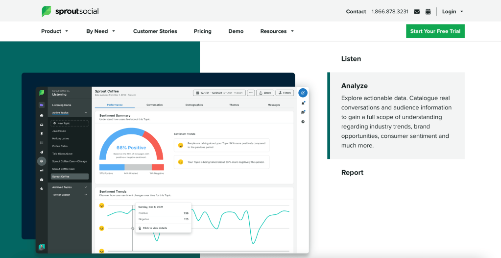 SproutSocial is one of the best platforms for social media management. It’s a complete tool with scheduling, analytics, social listening, and reporting.