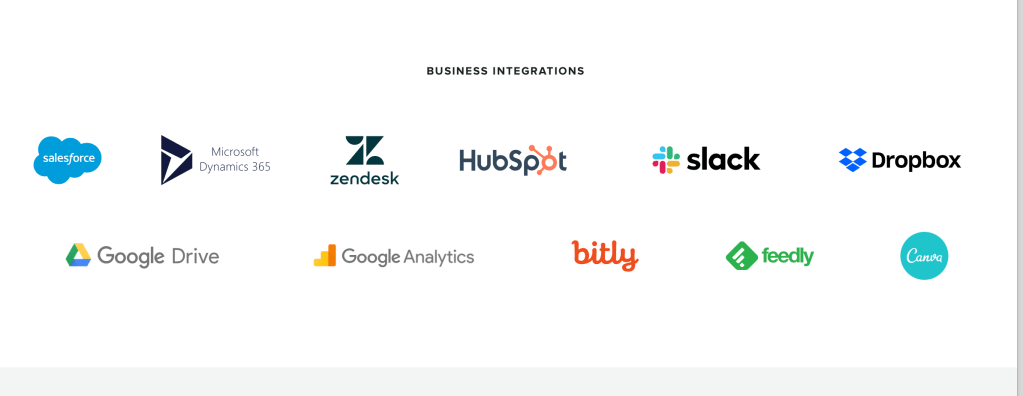 - Canva, SaleSforce, MicrosoftDynamics365, ZenDesk, Dropbox and more.
