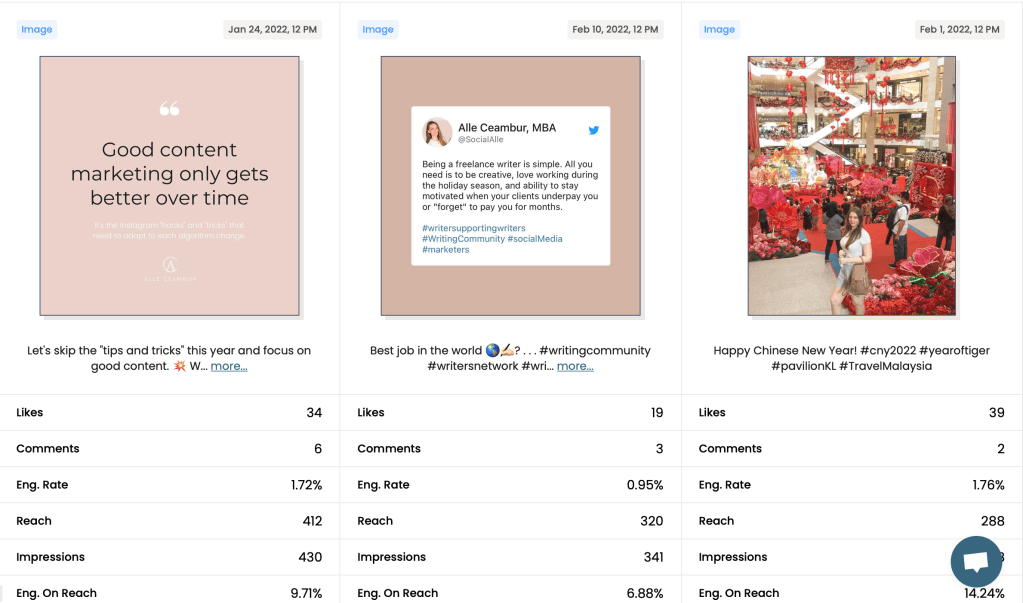 For that reason, I love Pallyy’s analytics tool. Their Instagram analytics go back to 2 years, and offer a lot of detailed statistics regarding posts, competitor charts and even personalised (custom) reports. So, if you’re someone who likes data – I think you’ll enjoy Pallyy analytics.