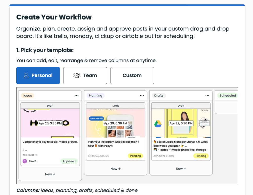 With the latest update, you can create Workflows and planning boards that make it easier to collaborate with your team. You can try it FREE to schedule a limited number of posts to see if you like it!