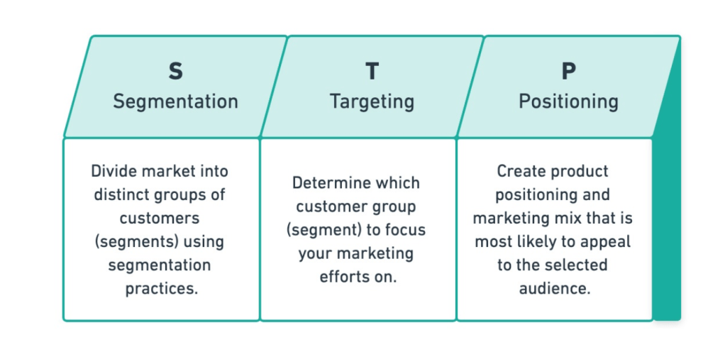 In order for you to reach your goal, you need to work out an STP strategy. An STP strategy is basically your approach to segment and target the market and position your brand.