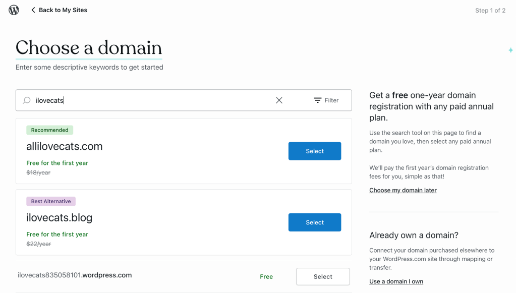 With your blog concept in hand, you now need to think of a domain for your website. If you create your blog on WordPress.com, your domain will be free for 1 year.