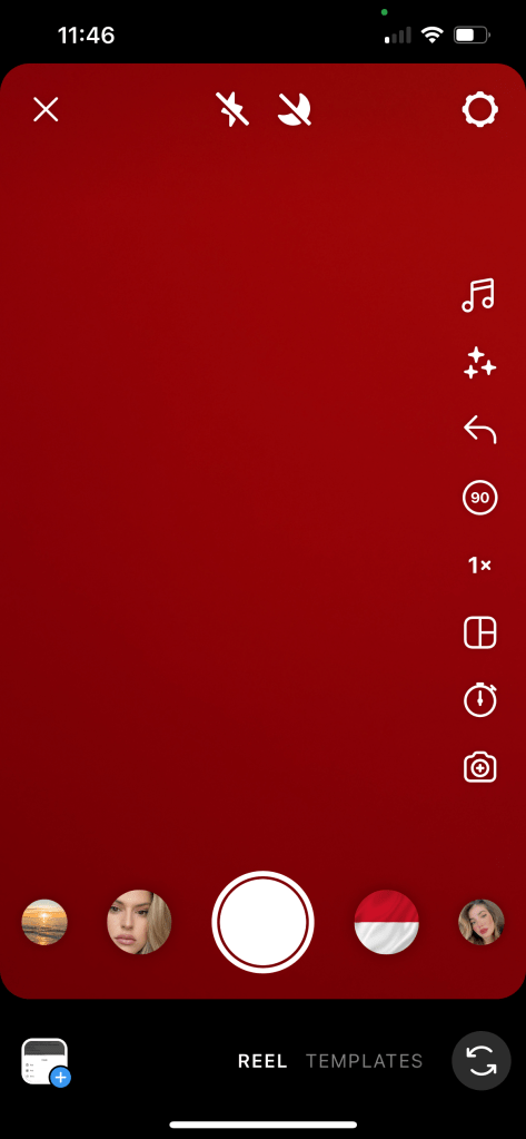 • Press & hold the button at the centre of the screen to record your Reel. Alternatively, you can edit a pre-designed Reels template by swiping to the right.