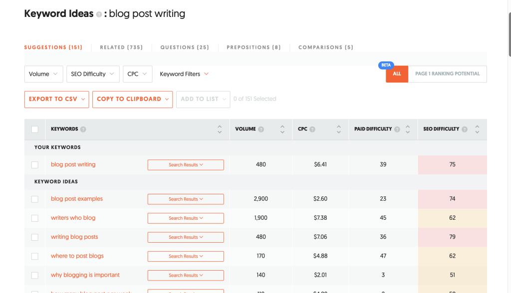 Ideally, as a new blogger, you should target keywords that are not too small (eg: >1,000) and not too broad (eg: <100k) in search volume.